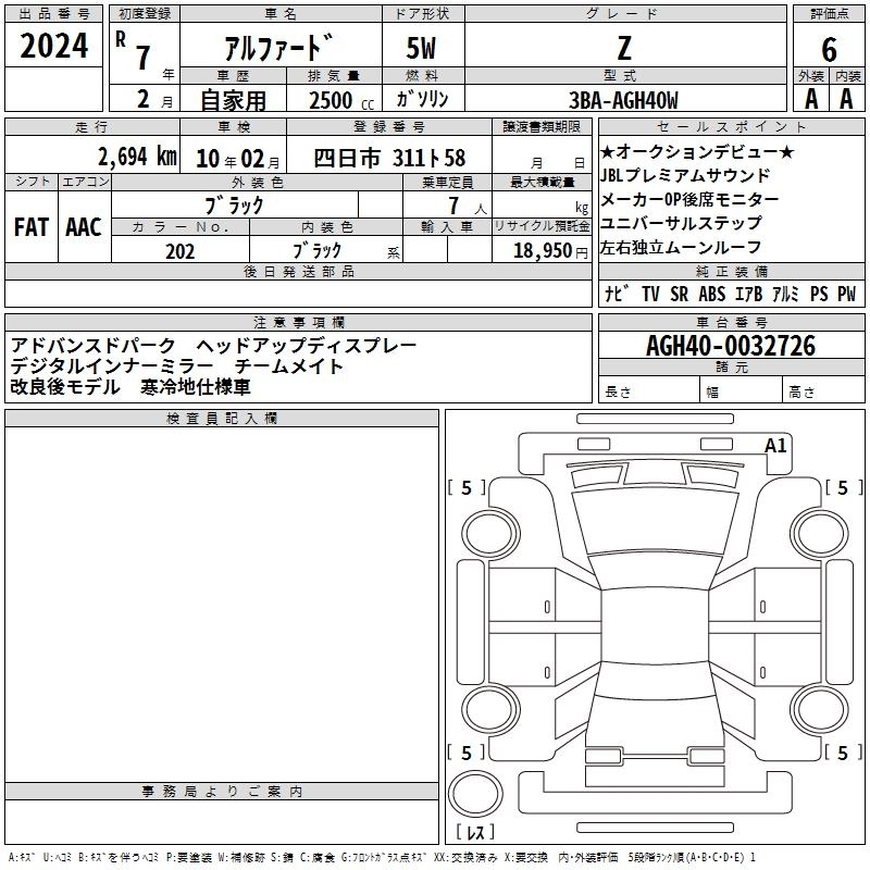 Статус выставлен на аукцион Лот 2024 Аукцион TAA Chubu Дата аукциона 19.03.2026