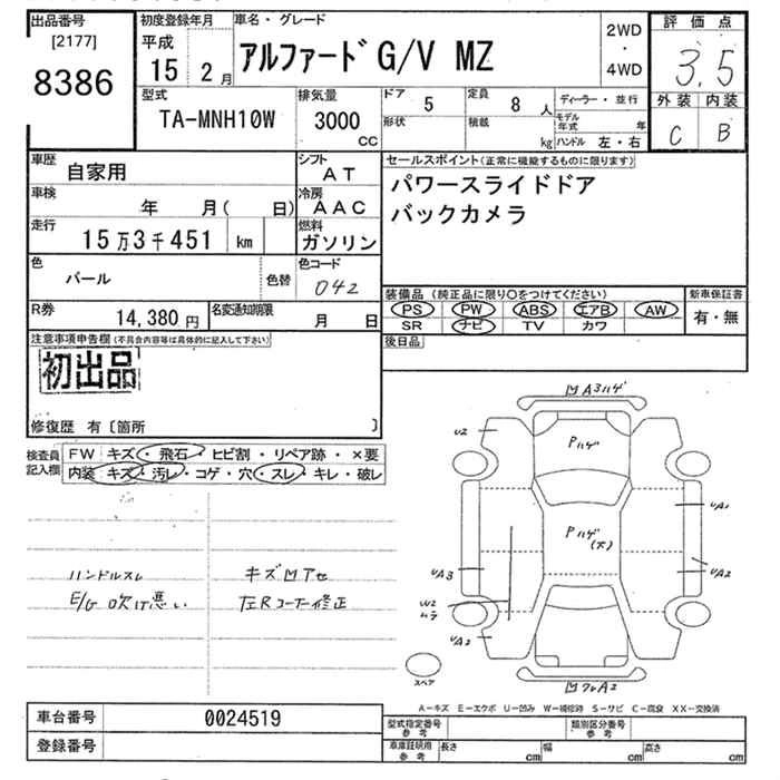 TOYOTA ALPHARD 2003 г., лот № 8386