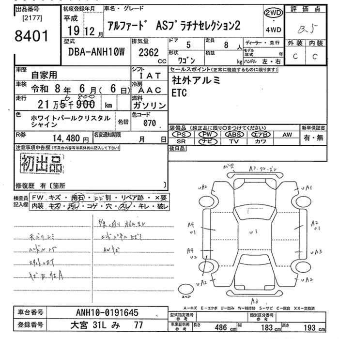 TOYOTA ALPHARD 2007 г., лот № 8401