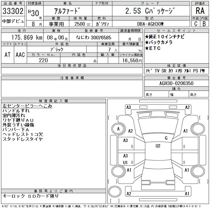 | 2.5S A PACKAGE | DBA-AGH30W | 2AR-FE | FF | CVT | 2493cc | 182ps(134kW)/6000rpm | AИ-92 | 3 905 280 | |