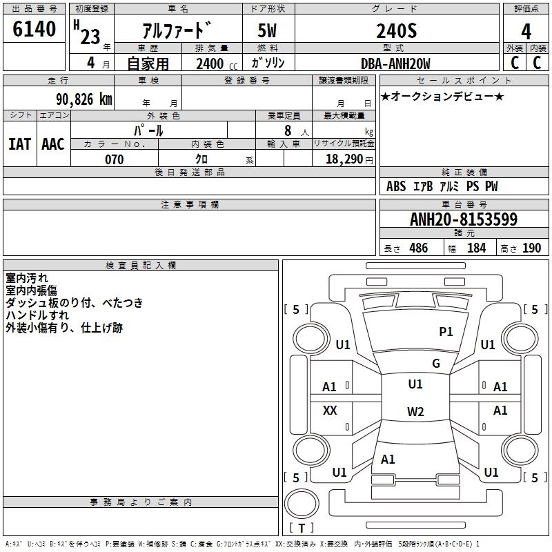 | 240X | DBA-ANH20W | 2AZ-FE | FF | CVT | 2362cc | 170ps(125kW)/6000rpm | AИ-92 | 3 175 000 | |