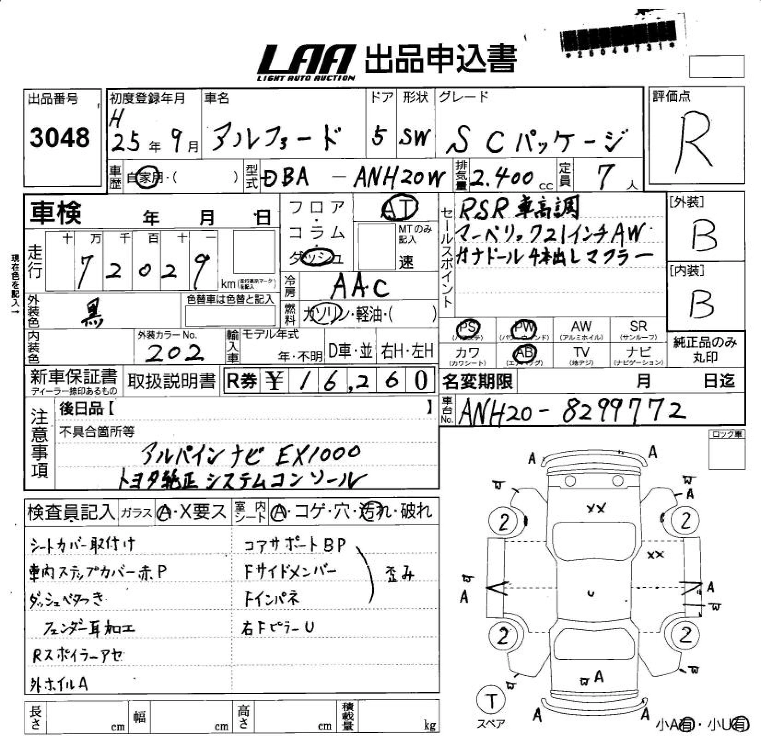 | 240S TYPE GOLD II | DBA-ANH25W | 2AZ-FE | Full-time 4WD | CVT | 2362cc | 170ps(125kW)/6000rpm | AИ-92 | 3 879 000 | |