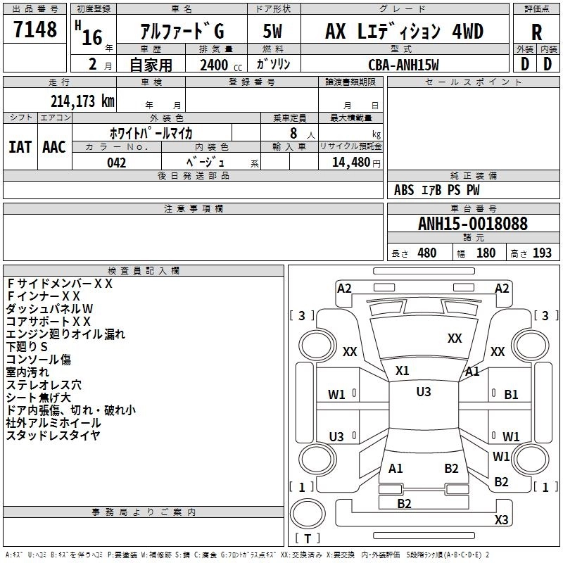 TOYOTA ALPHARD 2004 г., лот № 7148