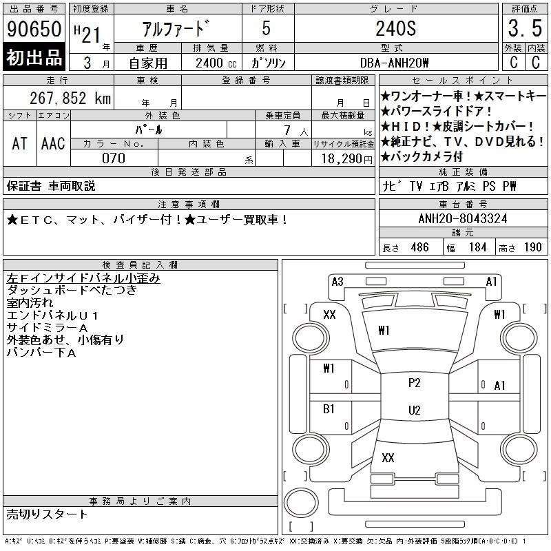 | 240S LIMITED | DBA-ANH20W | 2AZ-FE | FF | CVT | 2362cc | 170ps(125kW)/6000rpm | AИ-92 | 3 280 000 |