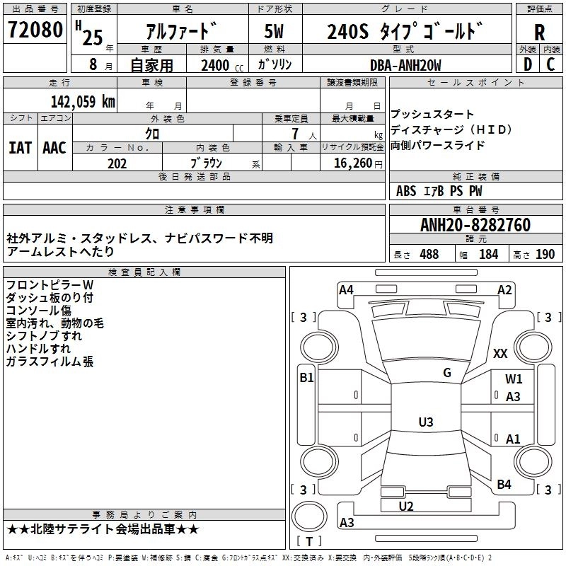 TOYOTA ALPHARD 2013 г., лот № 72080