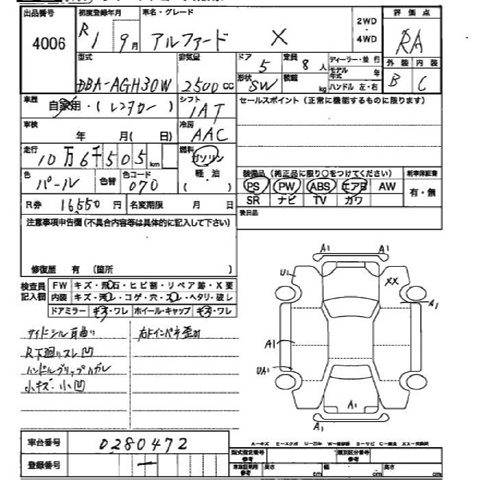| 2.5S A PACKAGE | DBA-AGH35W | 2AR-FE | Full-time 4WD | CVT | 2493cc | 182ps(134kW)/6000rpm | AИ-92 | 4 253 700 | |