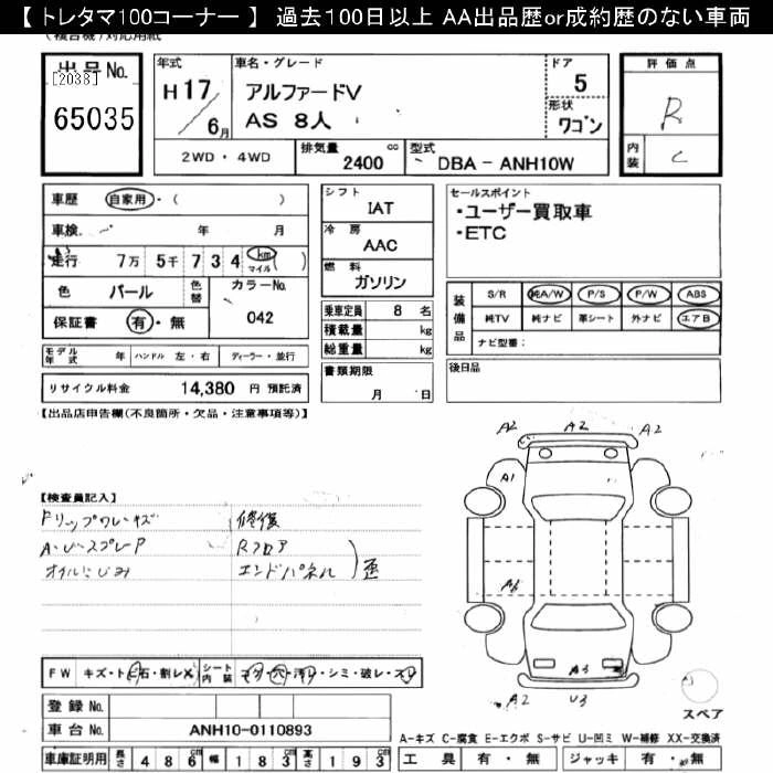 TOYOTA ALPHARD 2005 г., лот № 65035
