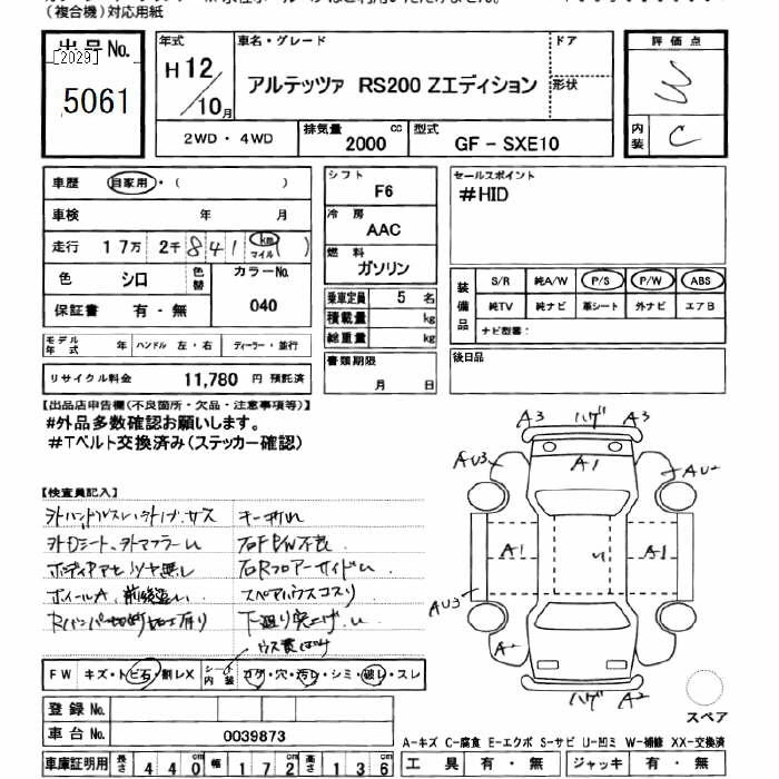| RS200 Z EDITION | GF-SXE10 | 3S-GE | FR | 5AT | 1998cc | 200ps(147kW)/7000rpm | AИ-95 | 2 540 000 | |