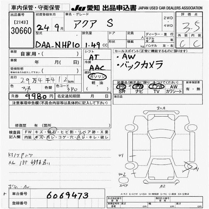 TOYOTA AQUA 2012 г., лот № 30660