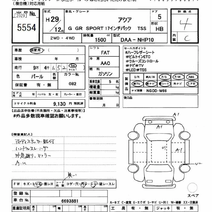 TOYOTA AQUA 2017 г., лот № 5554