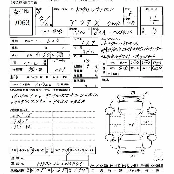 TOYOTA AQUA 2022 г., лот № 7063