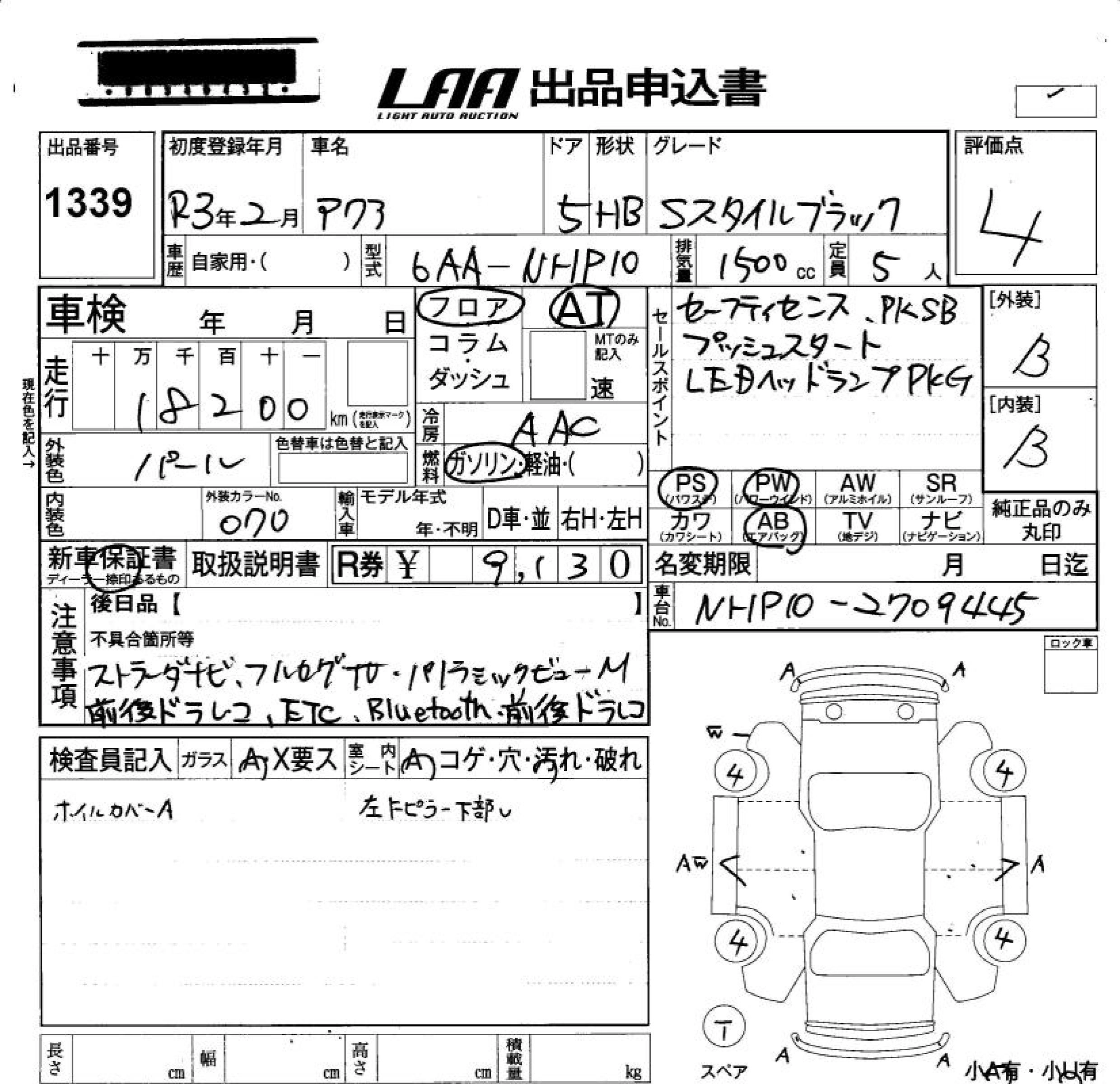 Статус не продан Лот 1339 Аукцион LAA Okayama Дата аукциона 30.01.2026