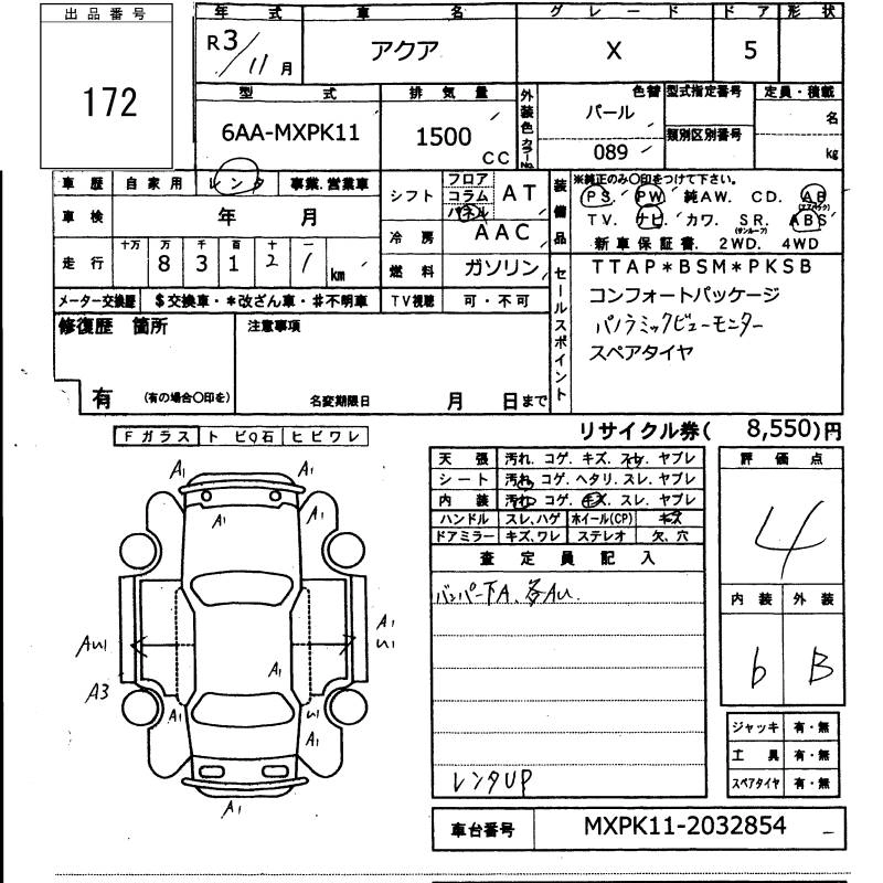 TOYOTA AQUA 2021 г., лот № 172