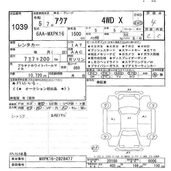 TOYOTA AQUA 2023 г., лот № 1039