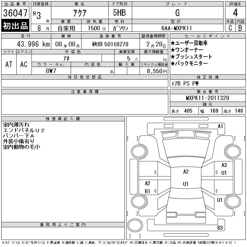 TOYOTA AQUA 2021 г., лот № 36047