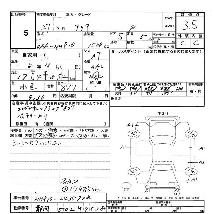 | S | DAA-NHP10 | 1NZ-FXE | FF | CVT | 1496cc | 74ps(54kW)/4800rpm | AИ-92 | 1 887 055 | |