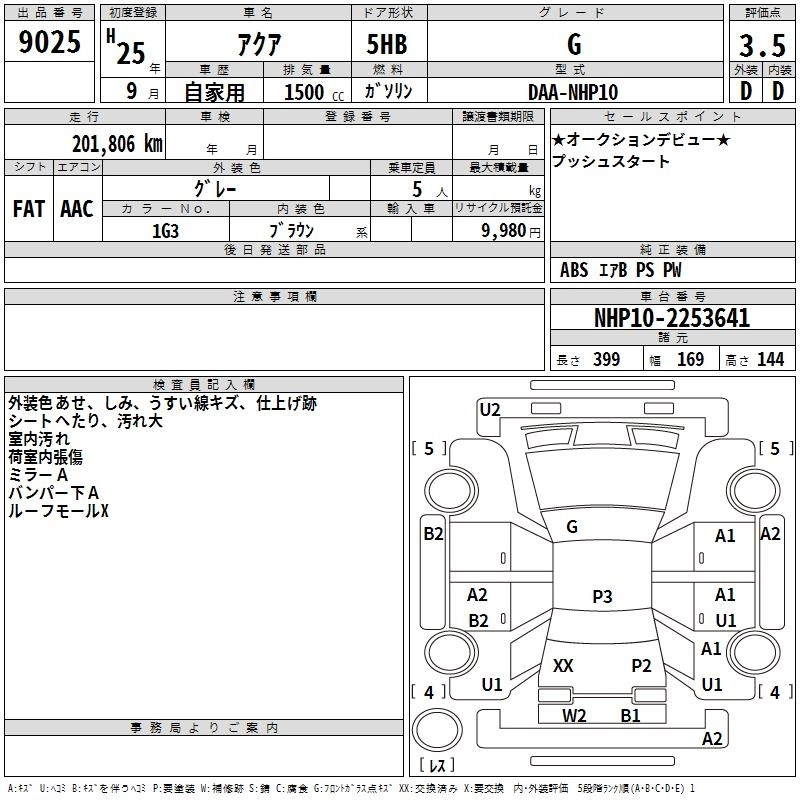 TOYOTA AQUA 2013 г., лот № 9025