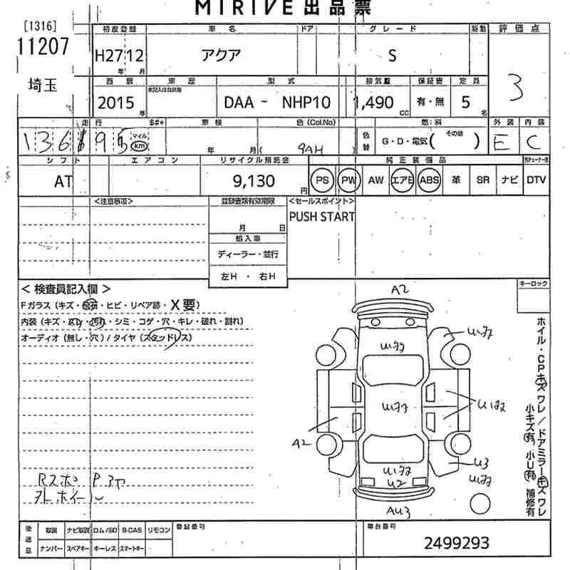 TOYOTA AQUA 2015 г., лот № 11207