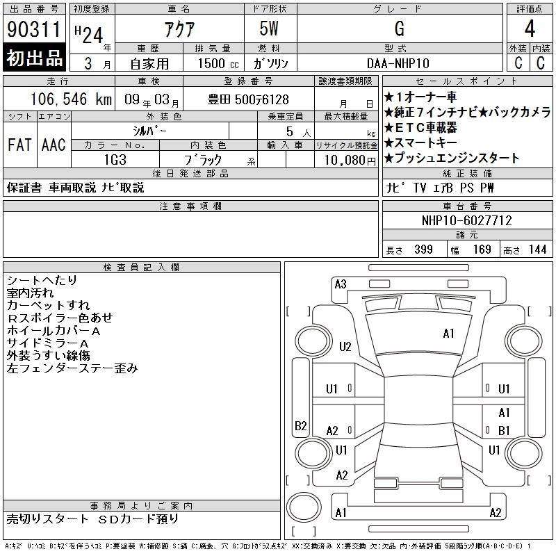 TOYOTA AQUA 2012 г., лот № 90311