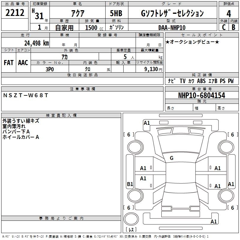 TOYOTA AQUA 2019 г., лот № 2212