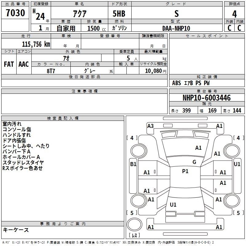 TOYOTA AQUA 2012 г., лот № 7030