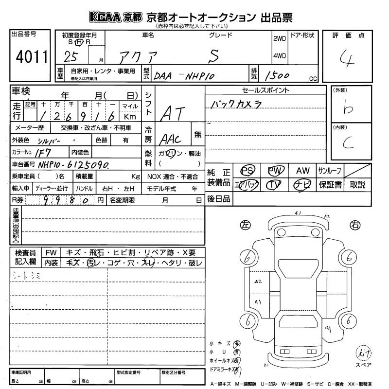 | S | DAA-NHP10 | 1NZ-FXE | FF | CVT | 1496cc | 74ps(54kW)/4800rpm | AИ-92 | 1 810 000 | |