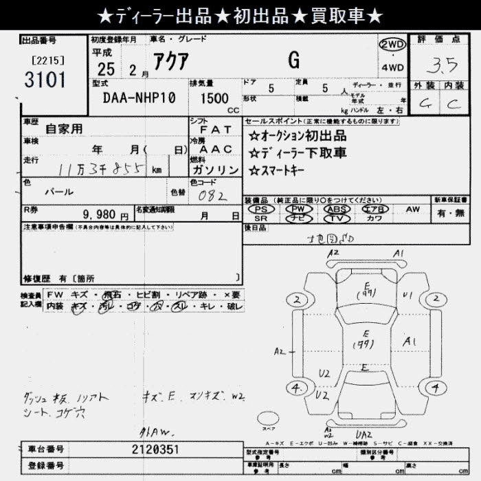 | G | DAA-NHP10 | 1NZ-FXE | FF | CVT | 1496cc | 74ps(54kW)/4800rpm | AИ-92 | 1 860 000 | |