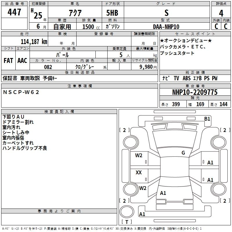 | S | DAA-NHP10 | 1NZ-FXE | FF | CVT | 1496cc | 74ps(54kW)/4800rpm | AИ-92 | 1 800 000 | |