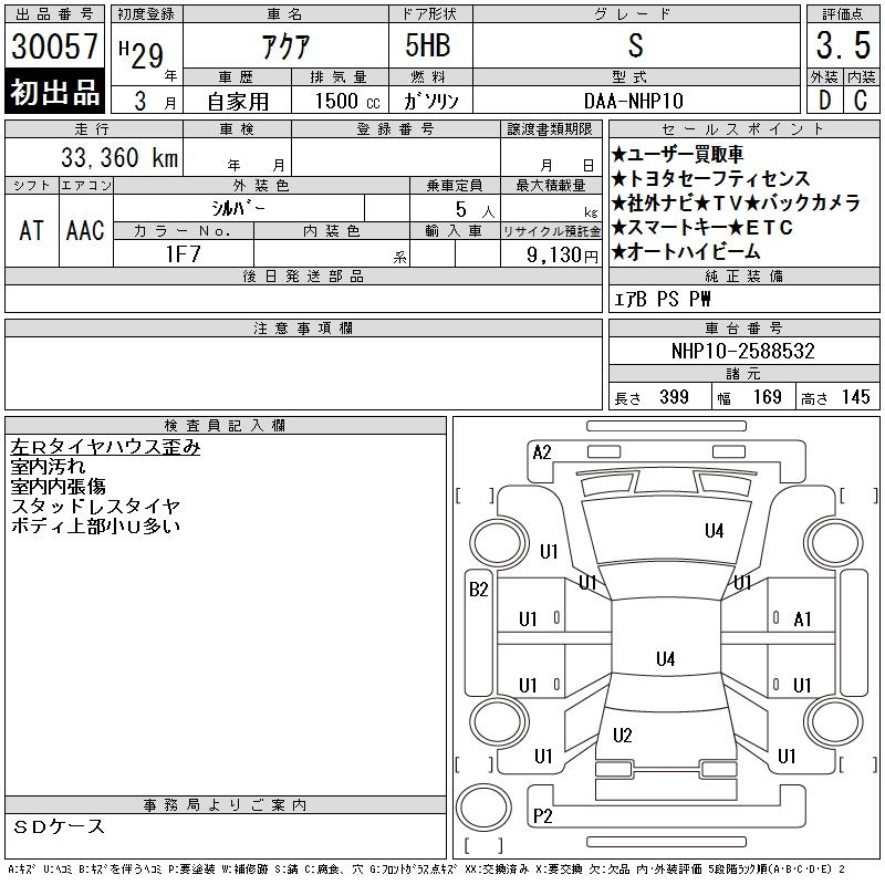 TOYOTA AQUA 2017 г., лот № 30057