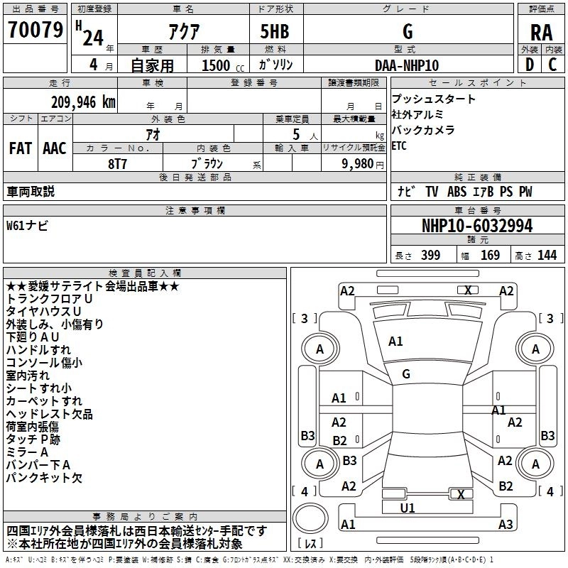 TOYOTA AQUA 2012 г., лот № 70079