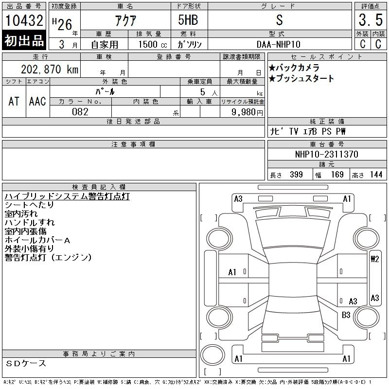 | G BLACK SOFT LEATHER SELECTION | DAA-NHP10 | 1NZ-FXE | FF | CVT | 1496cc | 74ps(54kW)/4800rpm | AИ-92 | 2 005 714 | |