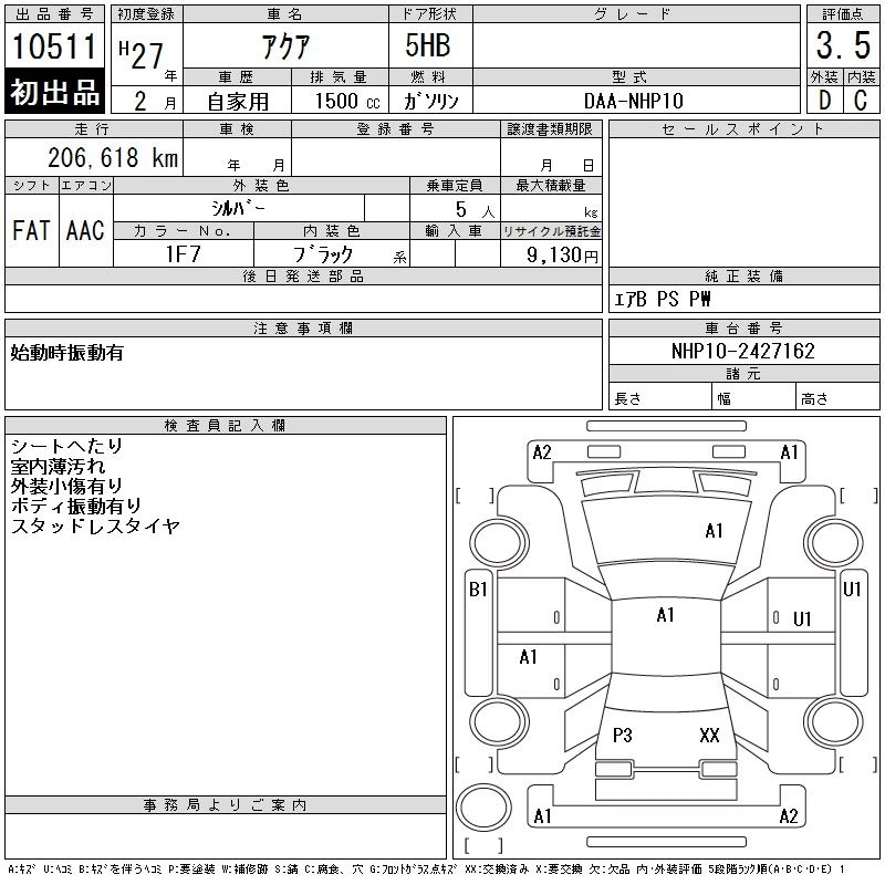 | X URBAN SOLID | DAA-NHP10 | 1NZ-FXE | FF | CVT | 1496cc | 74ps(54kW)/4800rpm | AИ-92 | 2 155 091 | |