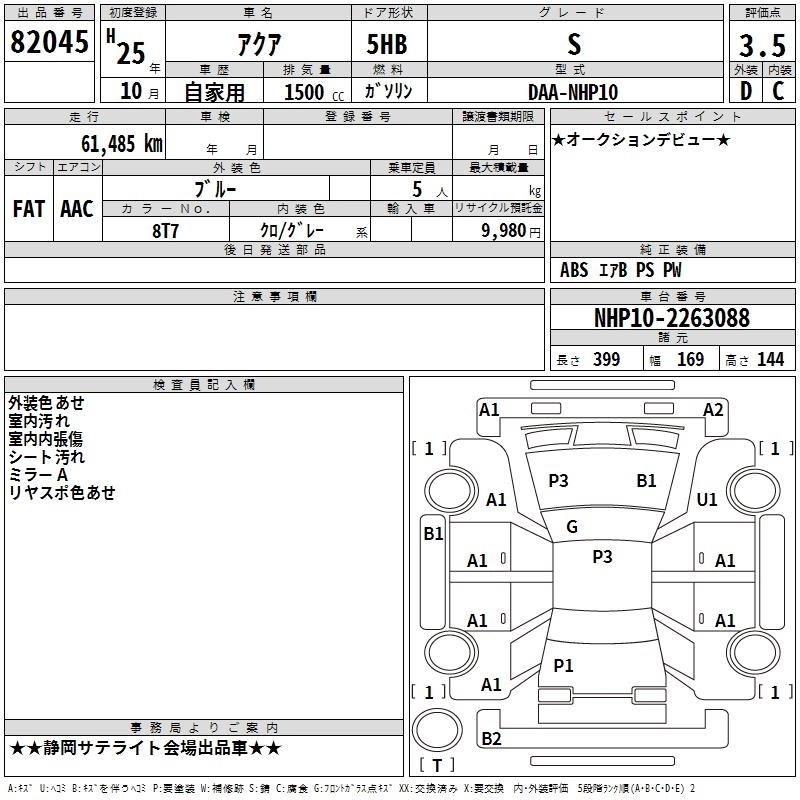 | S | DAA-NHP10 | 1NZ-FXE | FF | CVT | 1496cc | 74ps(54kW)/4800rpm | AИ-92 | 1 800 000 | |
