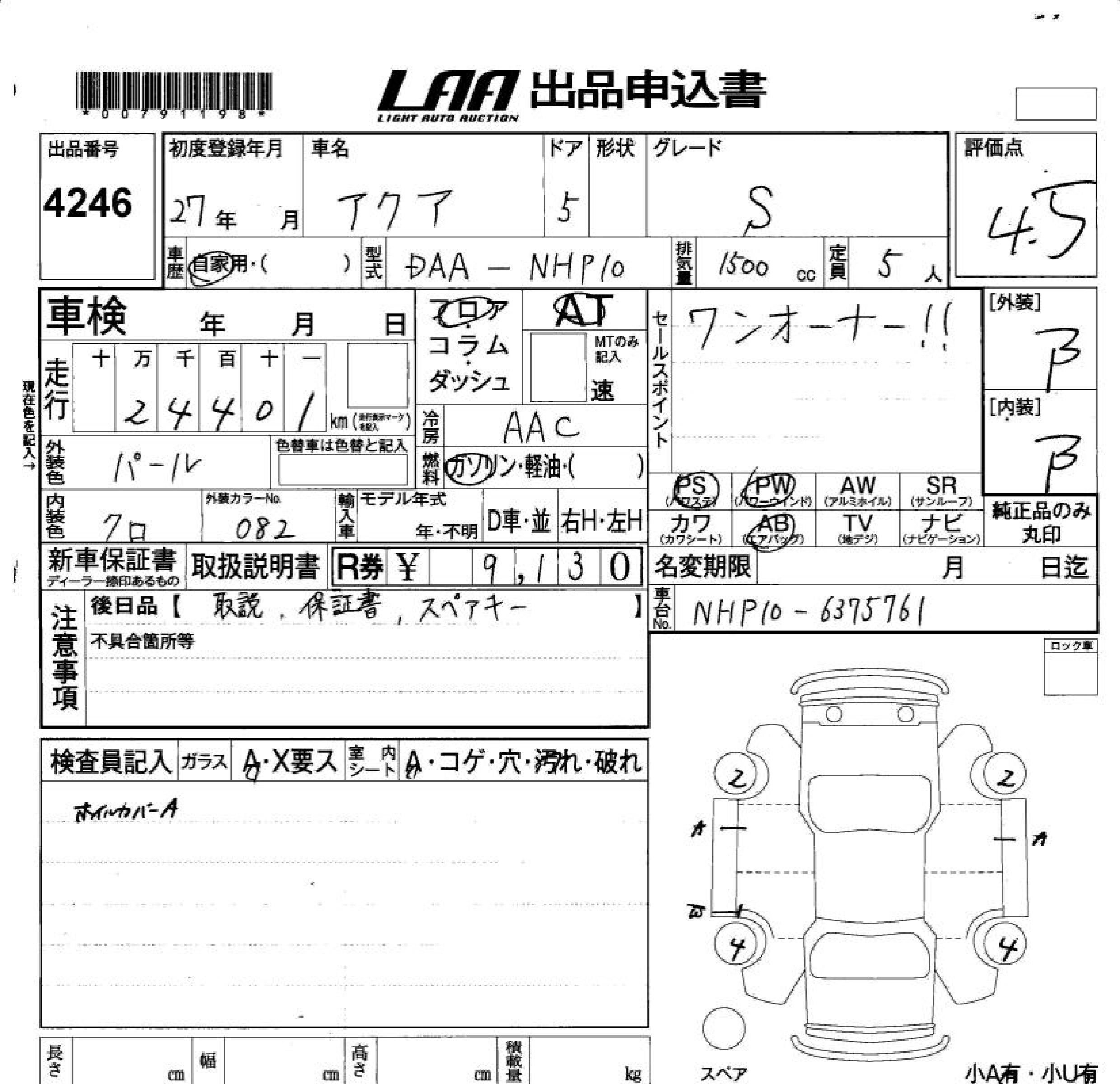 | G BLACK SOFT LEATHER SELECTION | DAA-NHP10 | 1NZ-FXE | FF | CVT | 1496cc | 74ps(54kW)/4800rpm | AИ-92 | 2 090 291 | |