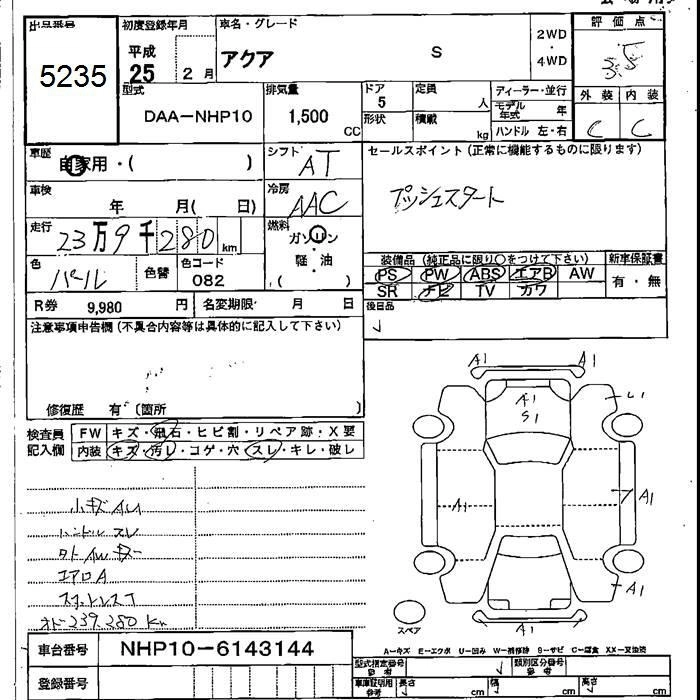 | S | DAA-NHP10 | 1NZ-FXE | FF | CVT | 1496cc | 74ps(54kW)/4800rpm | AИ-92 | 1 800 000 | |