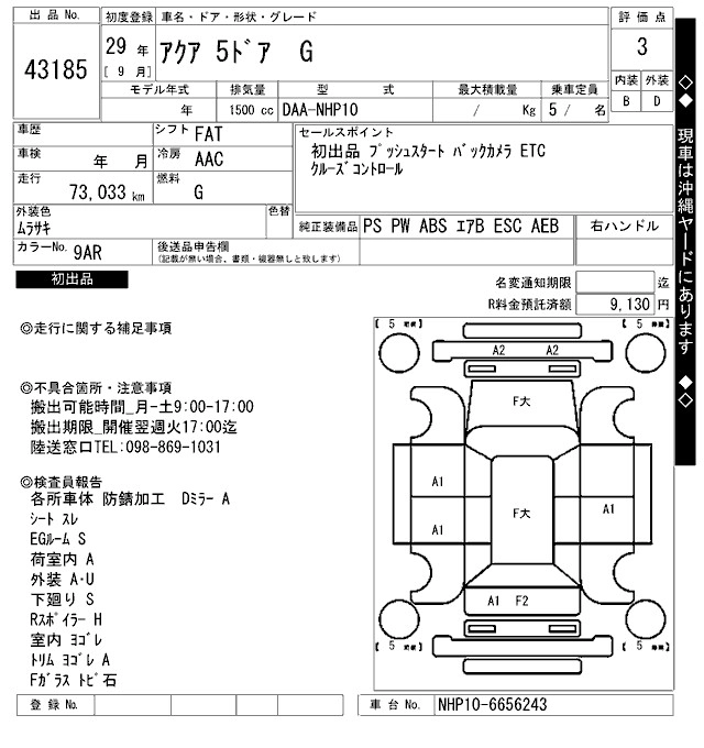| G GR SPORT 17 INCH PACKAGE | DAA-NHP10 | 1NZ-FXE | FF | CVT | 1496cc | 74ps(54kW)/4800rpm | AИ-92 | 2 538 000 | |