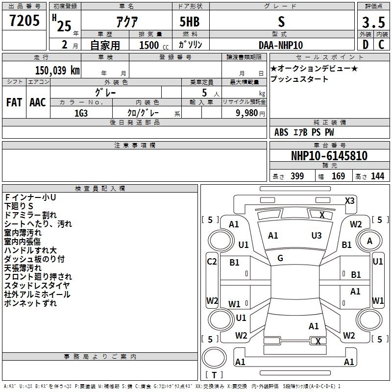 | S | DAA-NHP10 | 1NZ-FXE | FF | CVT | 1496cc | 74ps(54kW)/4800rpm | AИ-92 | 1 800 000 | |