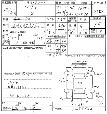 TOYOTA AQUA 2012 г., лот № 2102