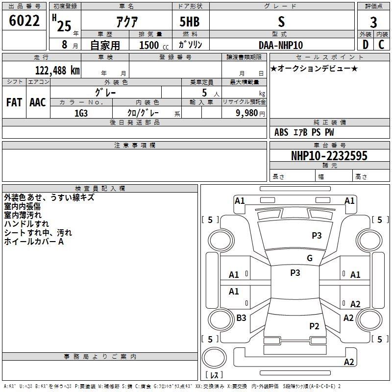 TOYOTA AQUA 2013 г., лот № 6022