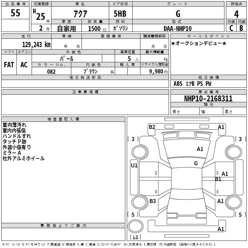 TOYOTA AQUA 2013 г., лот № 55