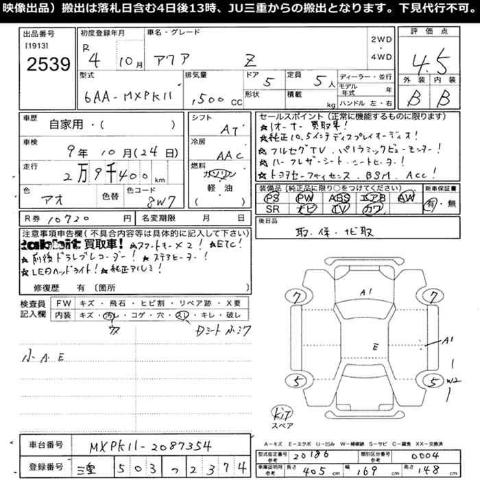TOYOTA AQUA 2022 г., лот № 2539