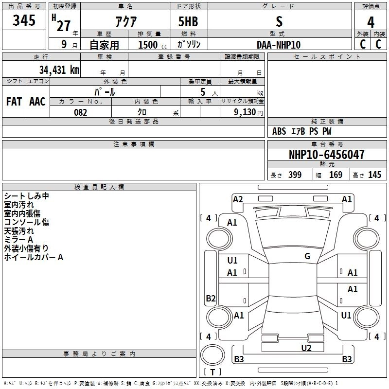 TOYOTA AQUA 2015 г., лот № 345