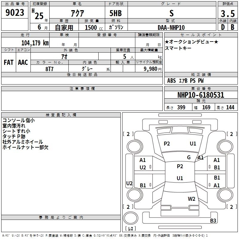 TOYOTA AQUA 2013 г., лот № 9023