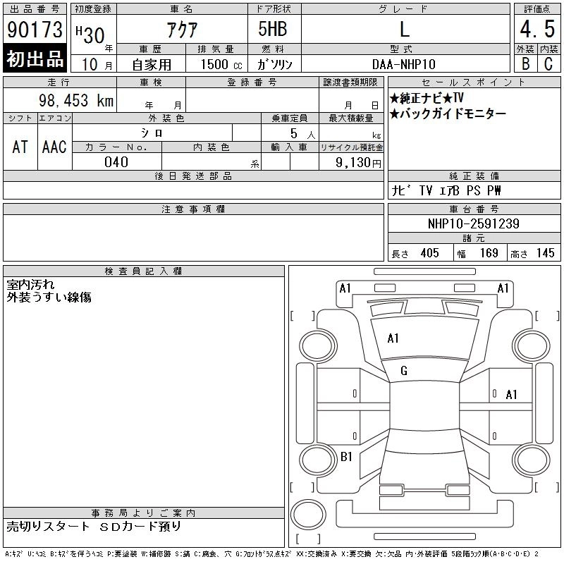 | G SOFT LEATHER SELECTION | DAA-NHP10 | 1NZ-FXE | FF | CVT | 1496cc | 74ps(54kW)/4800rpm | AИ-92 | 2 079 000 | |