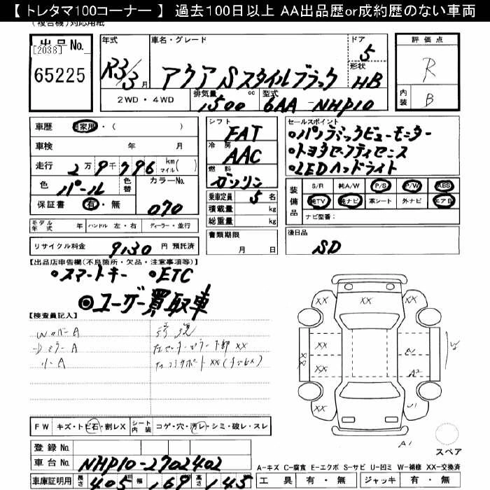 TOYOTA AQUA 2021 г., лот № 65225
