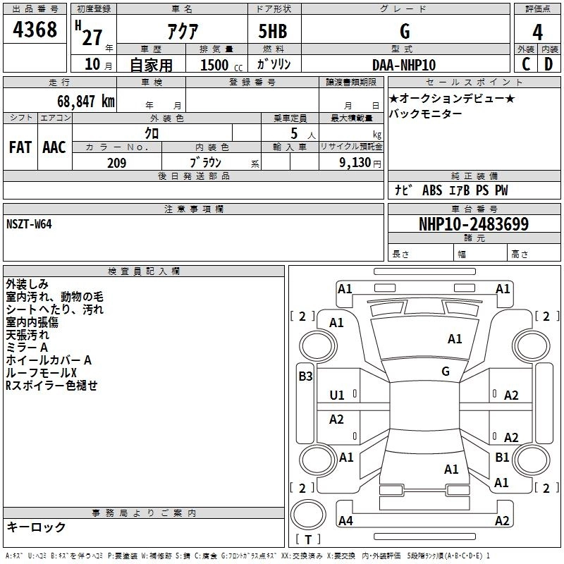 | G BLACK SOFT LEATHER SELECTION | DAA-NHP10 | 1NZ-FXE | FF | CVT | 1496cc | 74ps(54kW)/4800rpm | AИ-92 | 2 090 291 | |