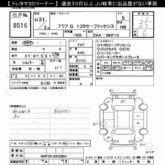 TOYOTA AQUA 2019 г., лот № 8516