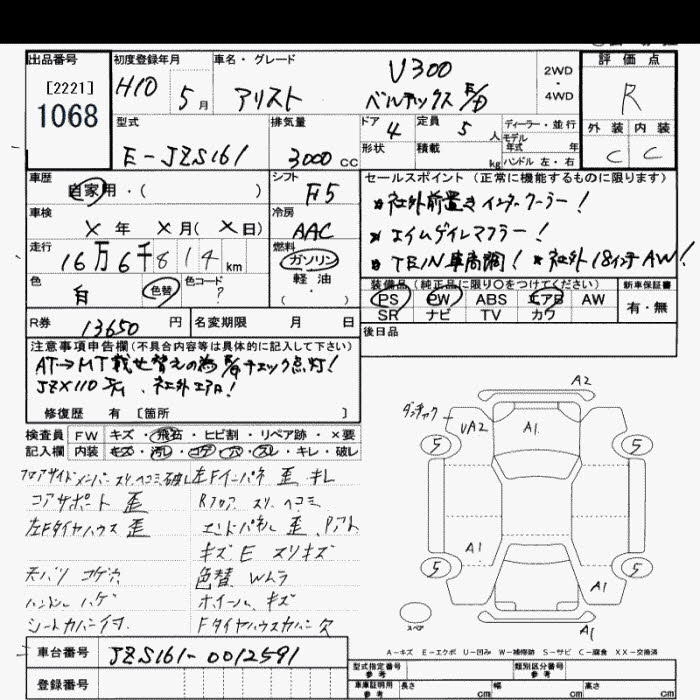 | V300 | E-JZS161 | 2JZ-GTE | FR | 4AT | 2997cc | 280ps(206kW)/5600rpm | AИ-95 | 4 360 000 | |