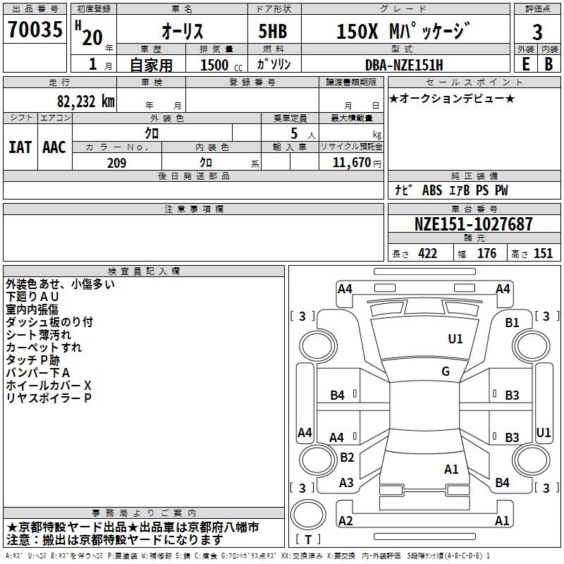 | 150X | DBA-NZE154H | 1NZ-FE | Full-time 4WD | CVT | 1496cc | 105ps(77kW)/6000rpm | AИ-92 | 1 832 250 | |