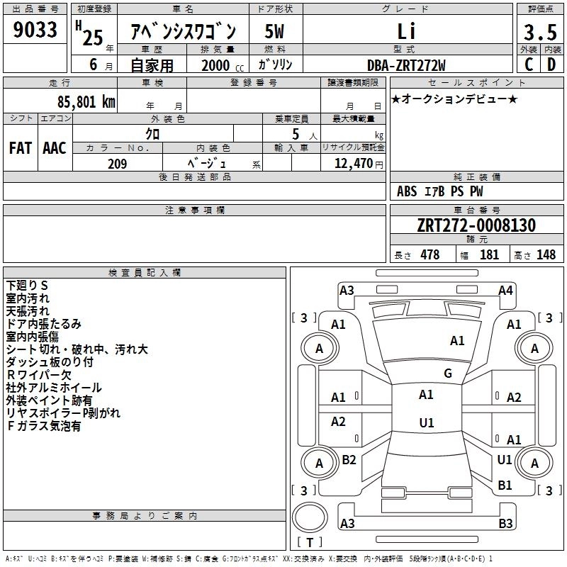 TOYOTA AVENSIS WAGON 2013 г., лот № 9033